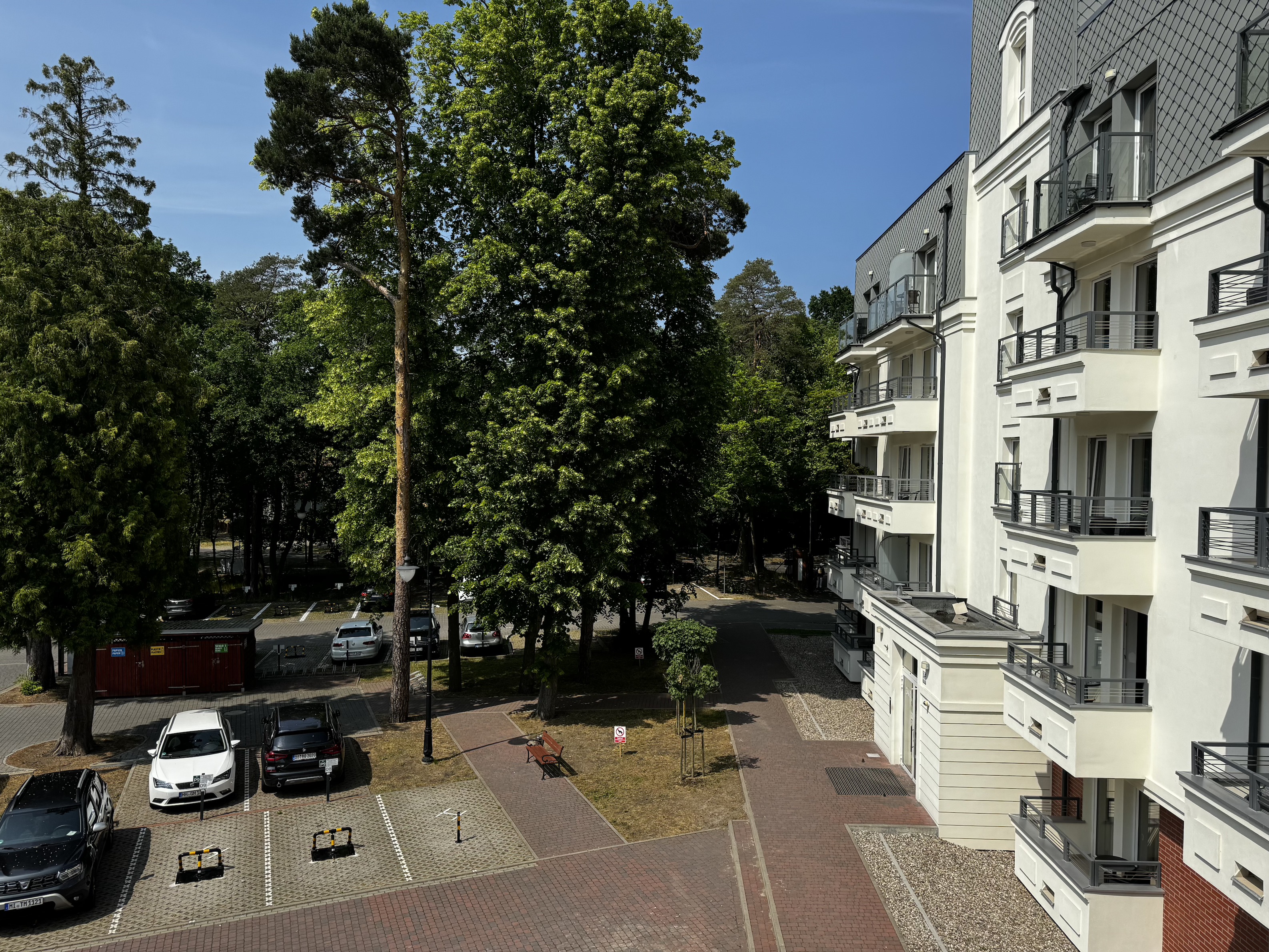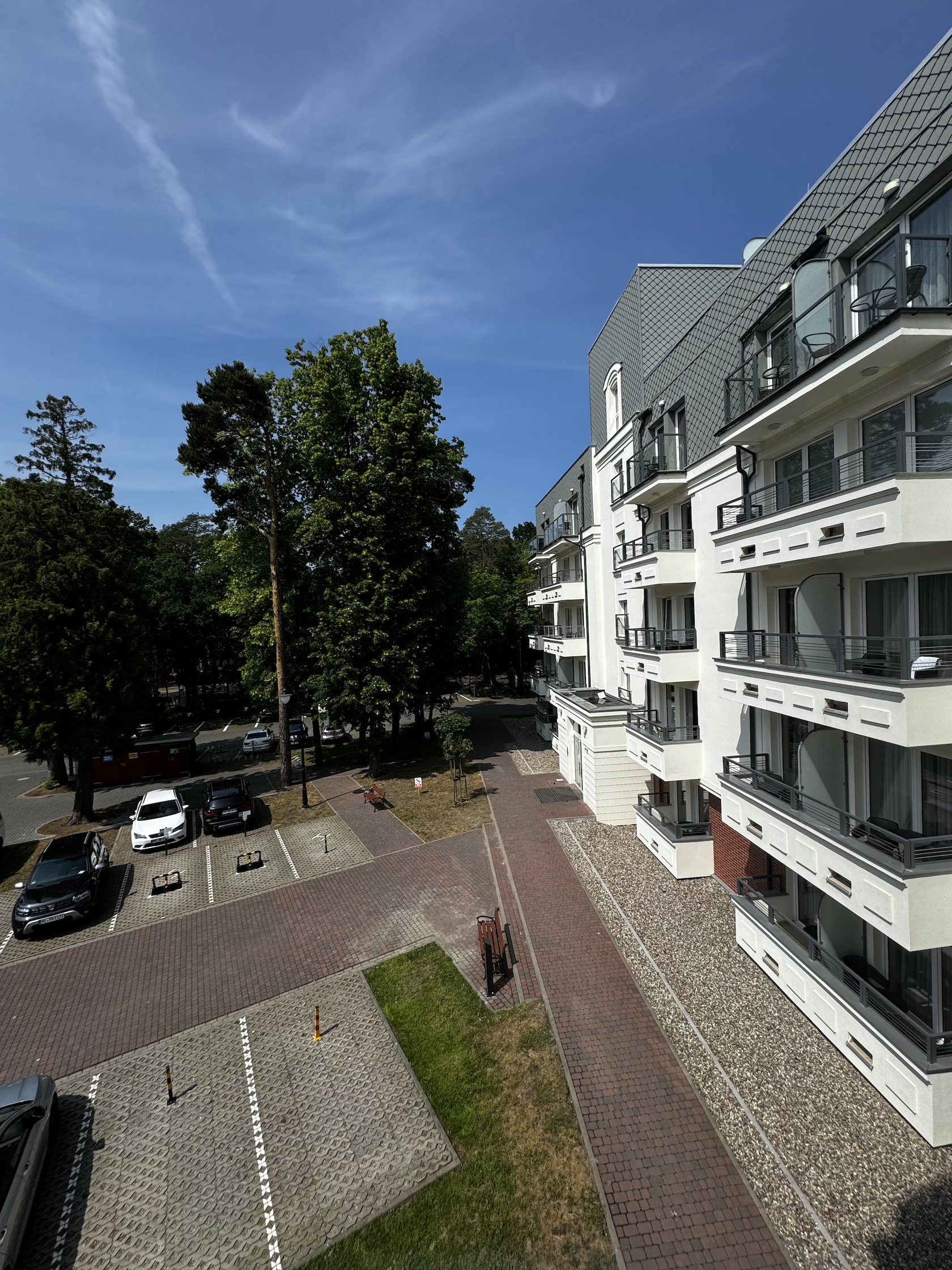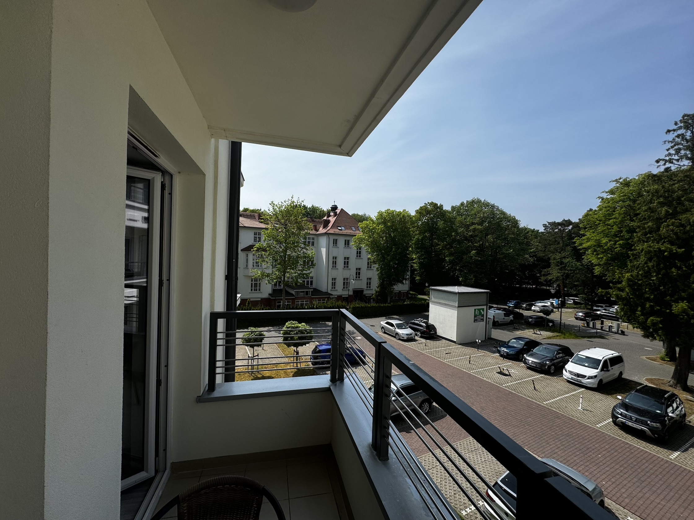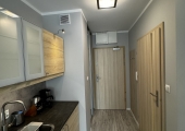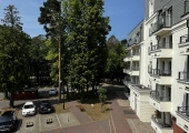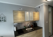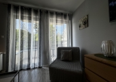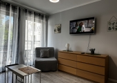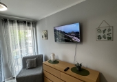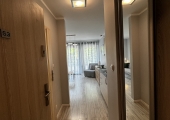 Ładnie i nowocześnie urządzony  apartament składający się z pokoju dziennego z aneksem kuchennym oraz łazienki i balkonu. Położony jest on na II piętrze w  czteropiętrowym budynku z windą. Apartament jest usytułowany na terenie kompleksu hotelowo – parkowego na ul. Wyspiańskiego w Świnoujściu.