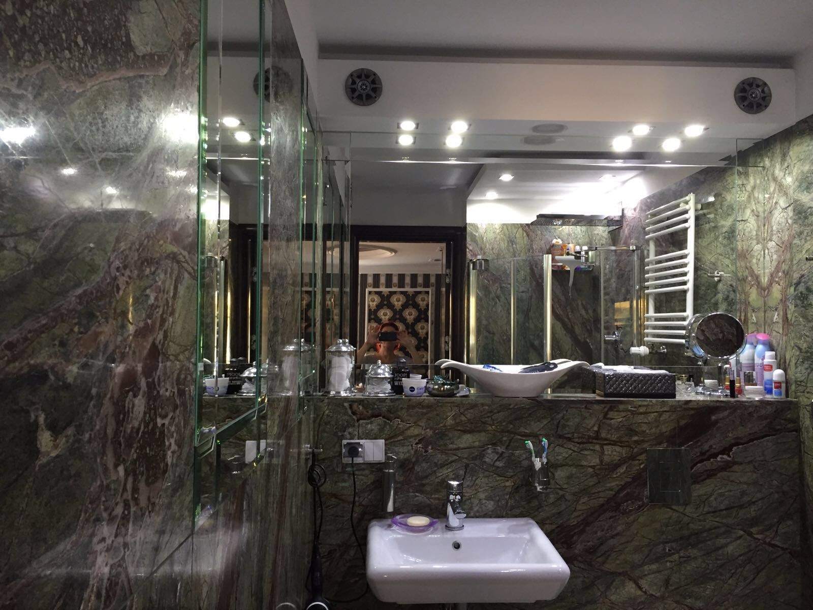 Łazienka wyposażona jest w umywalkę, lustro, wc, kabinę prysznicową oraz armaturę łazienkową o bardzo wysokim standardzie.