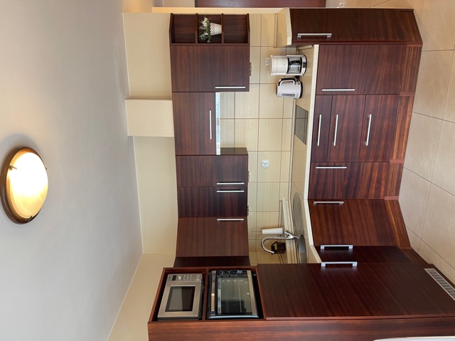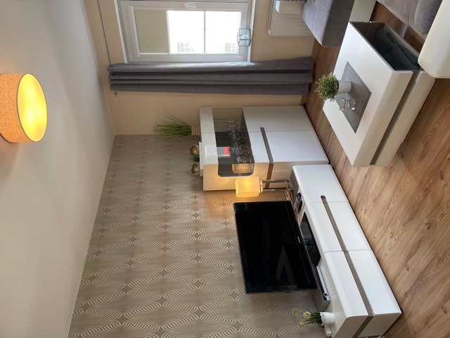 Na wyposażeniu aneksu kuchennego jest: kuchenka z płytą ceramiczną, lodówka, kuchenka mikrofalowa, mały piekarnik, czajnik elektryczny, ekspres do kawy, komplet garnków, zastawa stołowa, toster oraz sztućce.